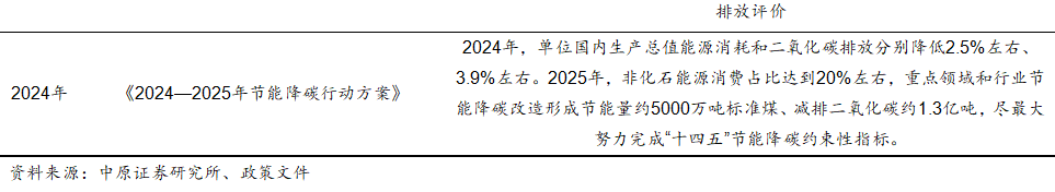 2024年5月国务院发布《2024—2025年节能降碳行动方案》,明确提出2024年单位 GDP 能耗和二氧化碳排放分别降低 2.5%左右、3.9%左右,规模以上工业单位增加值能源消耗降低 3.5%左右等。其中针对石化化工行业,《方案》提出:严控炼油、电石、磷铵、黄磷等行业新增产能,禁止新建用汞的聚氯乙烯、氯乙烯产能,严格控制新增延迟焦化生产规模。到2025年底,炼油、乙烯、合成氨、电石行业能效标杆水平以上产能占比超过 30%,能效基准水平以下产能完成技术改造或淘汰退出。